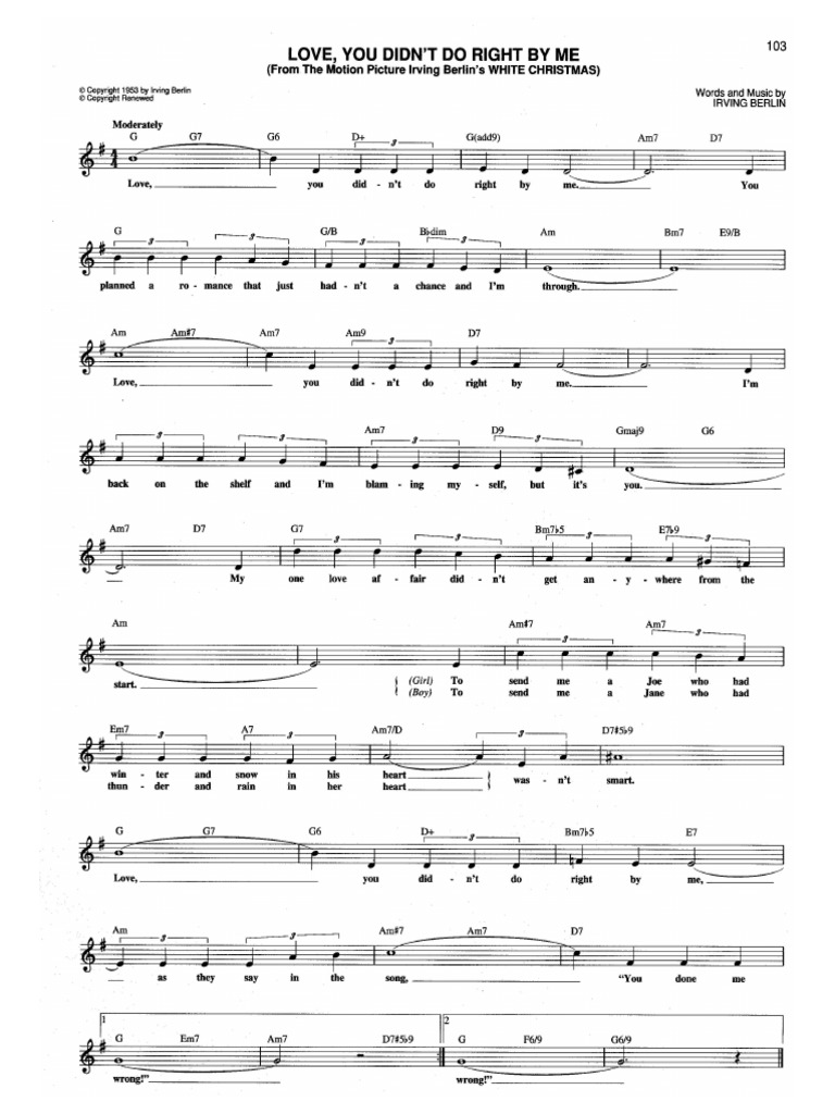Love, you didn't do right by me written by irving berlin, from the movie white christmas in the key of g major arranged for voice and piano with. Browse our 1 arrangement of love, you didn't do right by me. sheet music is available for piano, voice, guitar with 1 scoring in 5 genres. Download (free) or order love, you.