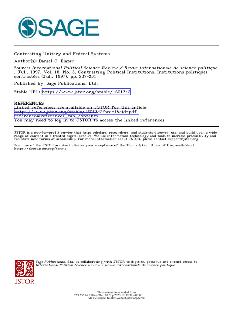 Contrasting Unitary Federal Form of Govt PDF France State (Polity)